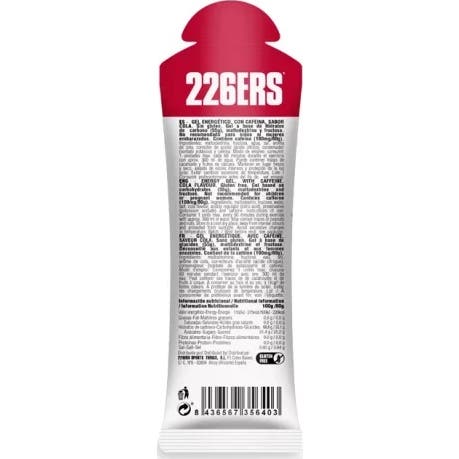 226Ers Gel de Fructosa Haute en Caffeine 150mg 80g est un gel énergétique conçu pour fournir une forte teneur en hydrates de carbone. Chaque gel contient 30 grammes d'hydrates de carbone, avec une formulation de maltodextrine et fructose dans un rapport de 10:8.