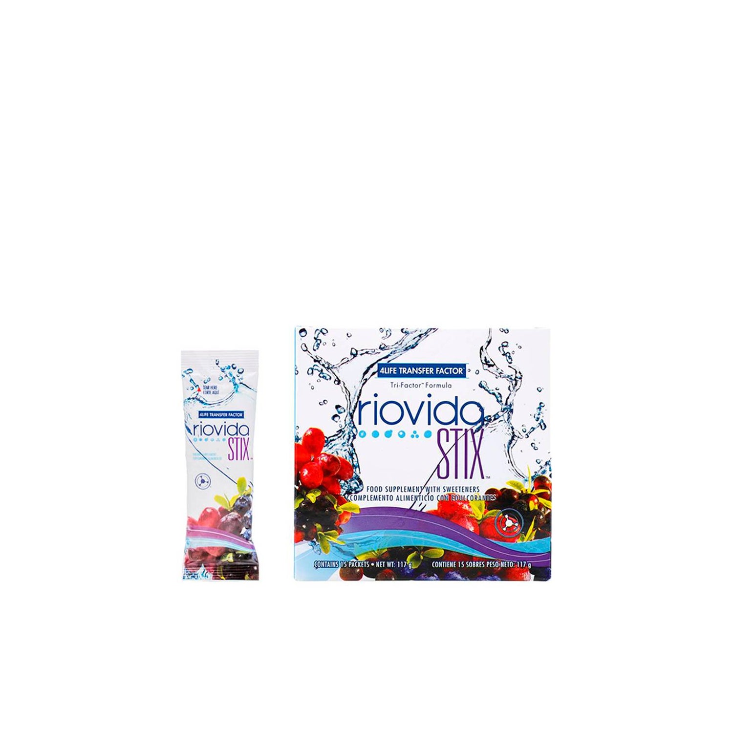 4Life Transfer Factor RioVida Stix 15 Sachets est un complément alimentaire qui incorpore des édulcorants, des minéraux et la formule exclusive Tri-Factor de 4Life. Chaque sachet fournit 600 mg de Transfer Factor, qui contribue au bien-être général.