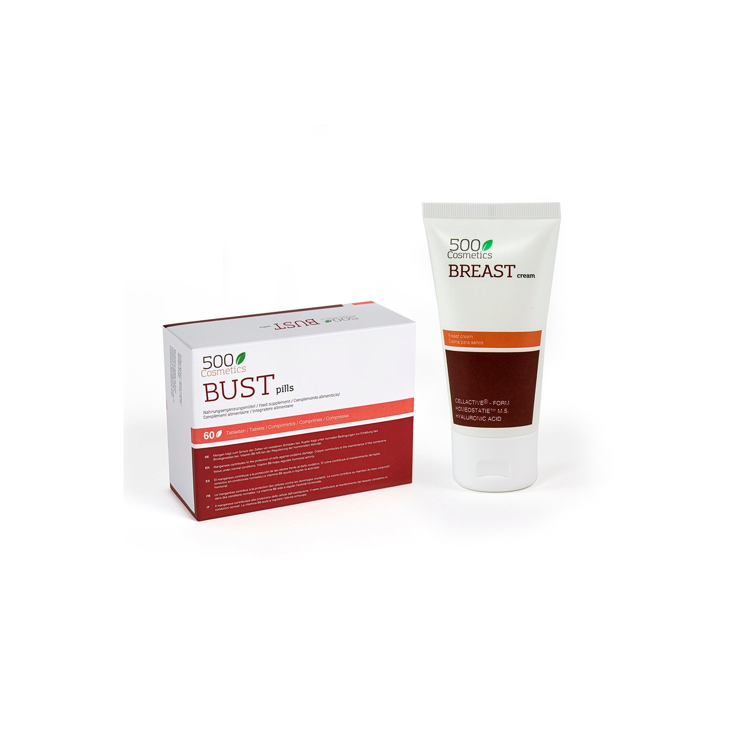 500Cosmetics Packs Breast Pour le Poitrine 60caps + Crème 100ml est un pack composé de :