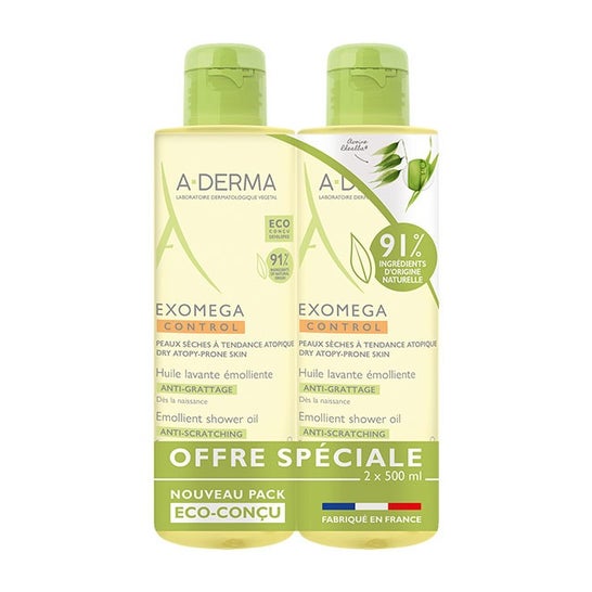 A-Derma Exomega Control Huile Lavante Émolliente 2x500ml est une huile nettoyante émolliente, anti-grattage, qui permet de nettoyer en douceur les peaux sèches, abîmées, et à tendance atopique