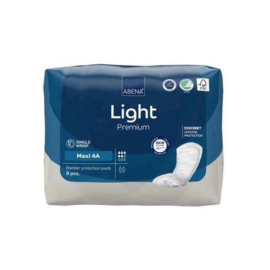 Abena Light Premium Protecteurs Pads Maxi 4A 8uds est l'option avancée d'ABENA pour ceux qui nécessitent une protection maximale quotidienne contre les pertes d'urine modérées. Son design anatomique s'adapte au corps, garantissant confort et discrétion pour les hommes et les femmes actifs.