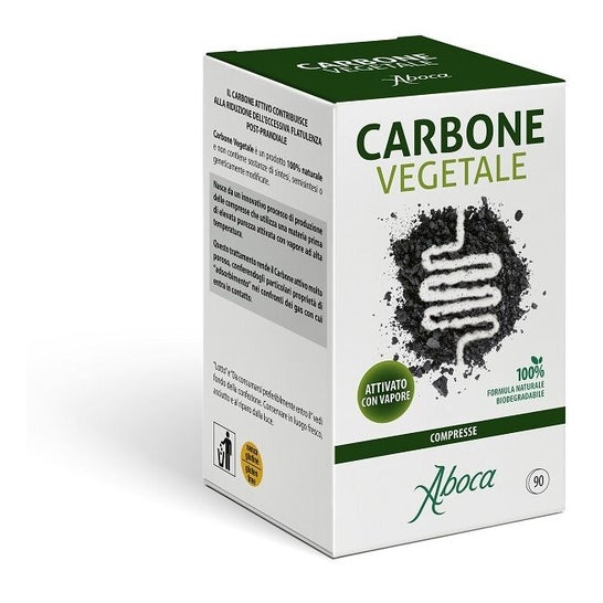 Aboca Carbone Vegetale 90comp est un complément alimentaire à base de charbon actif. 100% charbon est un produit naturel qui ne contient pas de substances synthétiques, semi-synthétiques ou génétiquement modifiées. Il est issu d'un processus innovant de production de comprimés qui utilise une matière première de grande pureté activée par de la vapeur à haute température.
