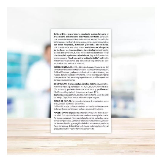 Complément alimentaire conçu comme un adjuvant dans le traitement du syndrome du côlon irritable. Avec une formule qui aide à réduire progressivement l'inconfort intestinal, en soulageant la douleur et les ballonnements. Composé d'un complexe moléculaire breveté d'origine végétale, obtenu à partir de résines d'encens, en association avec l'Aloe vera, le cumin, la camomille et la mélisse. Aide à maintenir un bon transit digestif et à réduire les ballonnements.