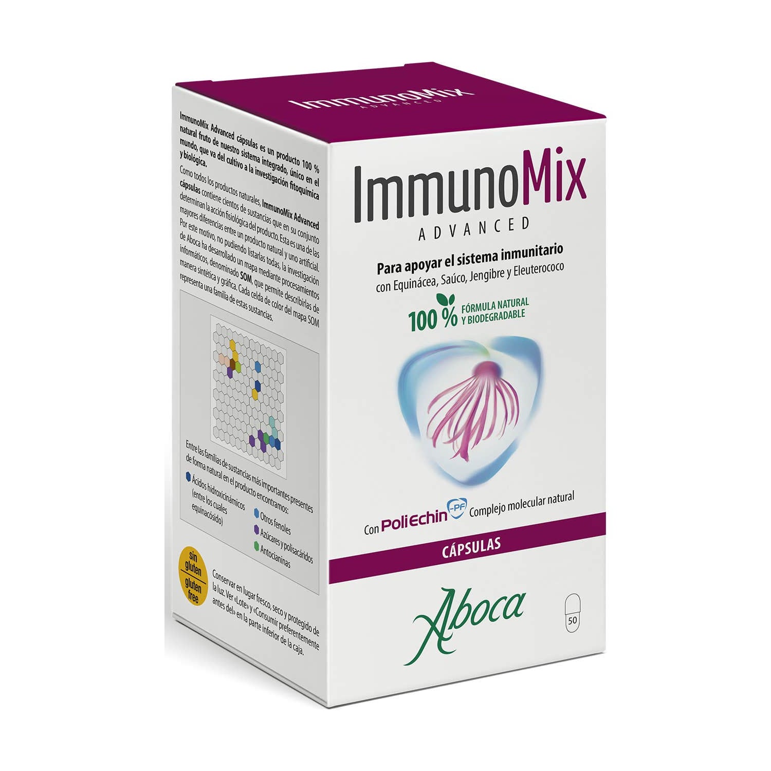 Complément alimentaire en gélules qui contribue à soutenir le système immunitaire. Sa formule 100% naturelle comprend de l'échinacée, qui aide à réduire la fièvre et le mucus, du sureau, qui aide à stimuler le système immunitaire, du gingembre, qui aide à soulager la congestion nasale, et de l'éleuthérocoque, qui aide à renforcer les défenses. Il peut être pris à tout moment de l'année dans les cas où le système immunitaire est affaibli.