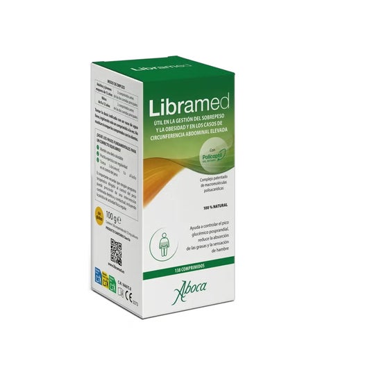 Aboca LibraMed 138 Comprimés est un complément alimentaire 100 % naturel, conçu pour aider à réguler le pic glycémique postprandial, réduire l’absorption des graisses et des glucides, atténuer la sensation de faim et limiter la somnolence après les repas.