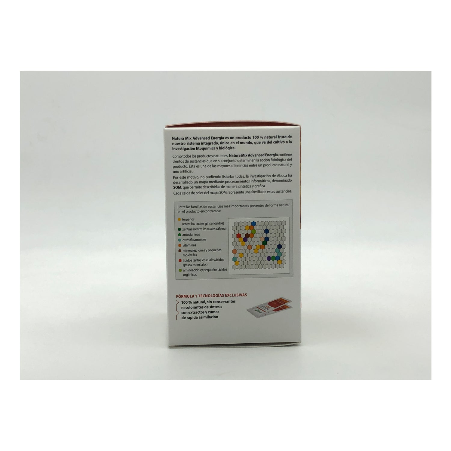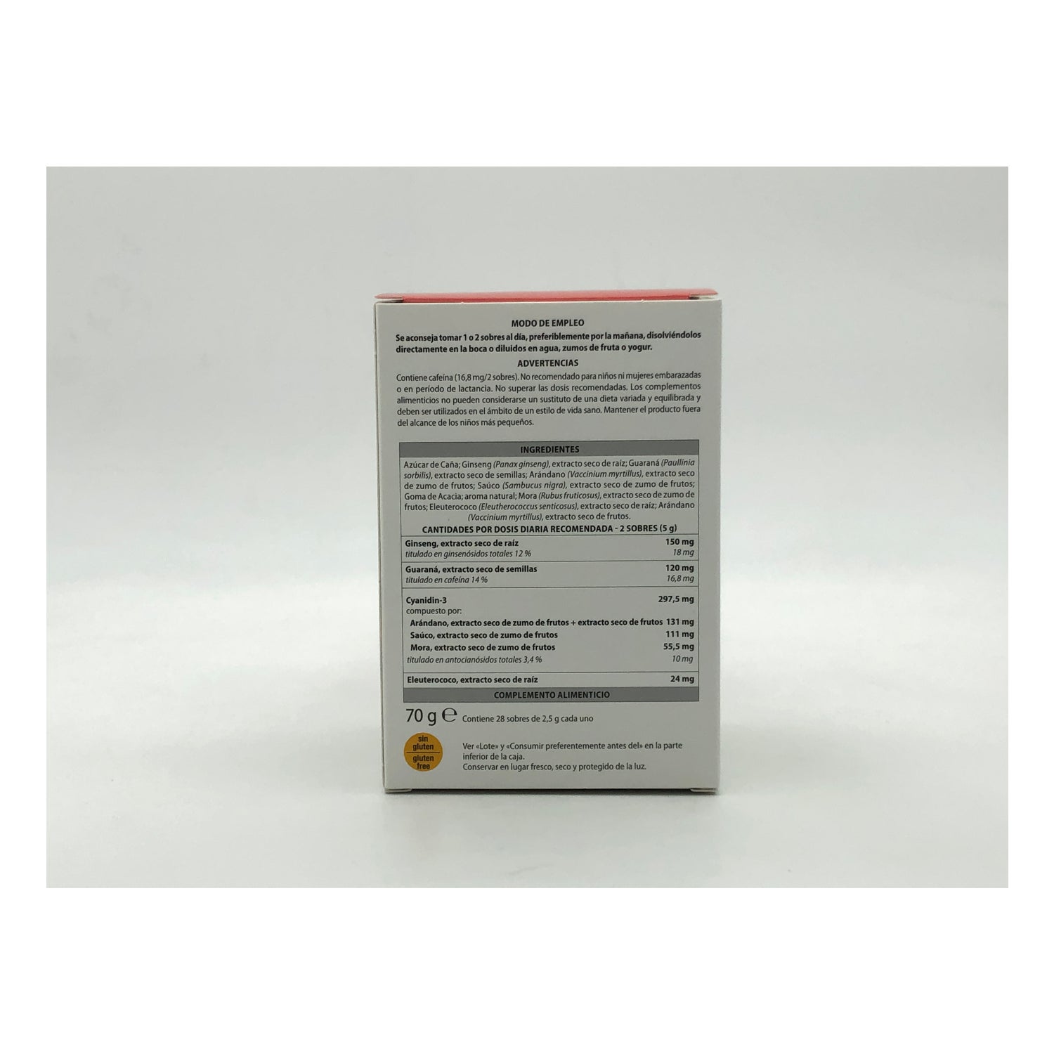 Formulé à base de ginseng, de guarana, d'éleuthérocoque et de cyanidine-3, il contient également du jus de canneberge lyophilisé, qui a un effet antioxydant, et du jus de sureau lyophilisé , qui aide à renforcer les défenses naturelles de l'organisme.