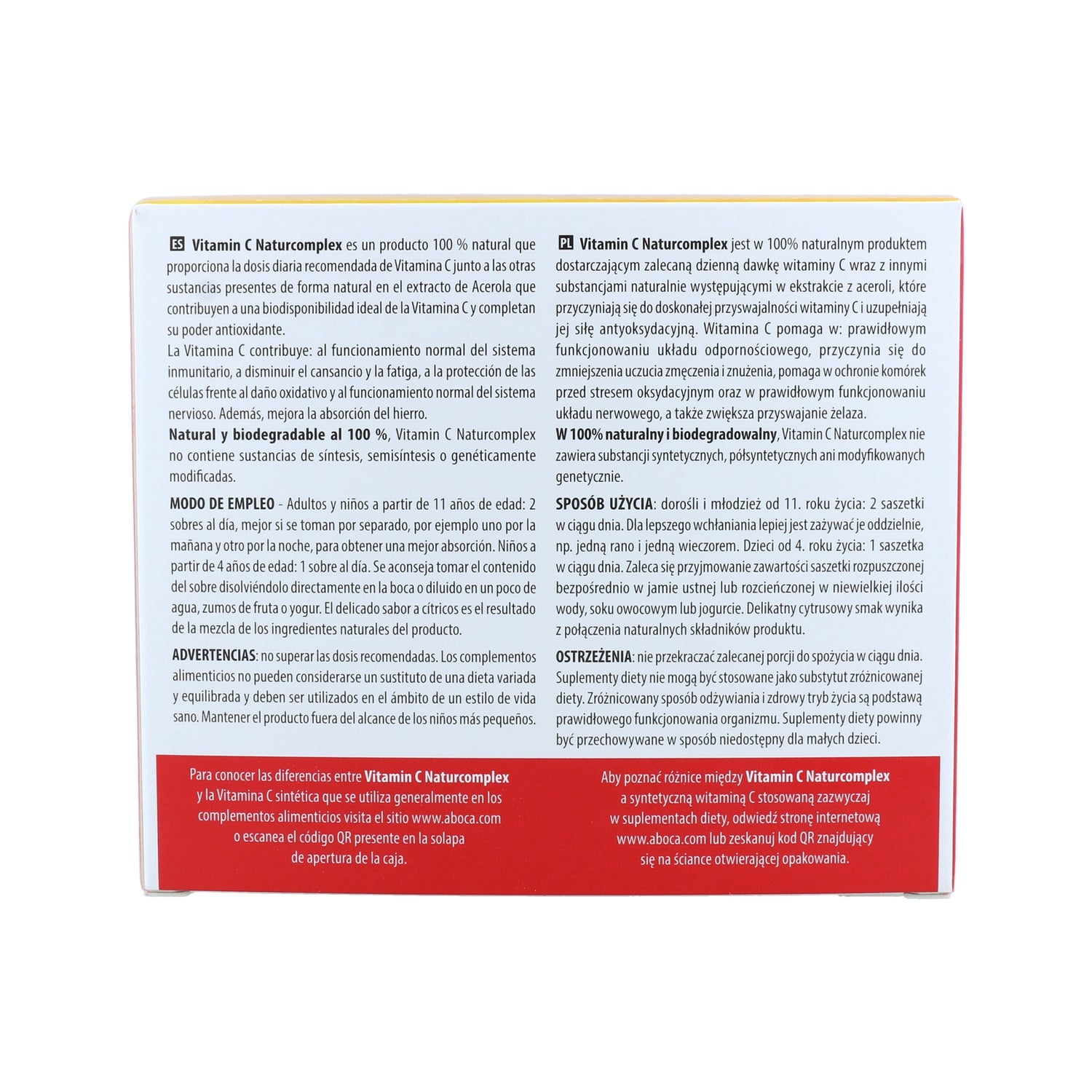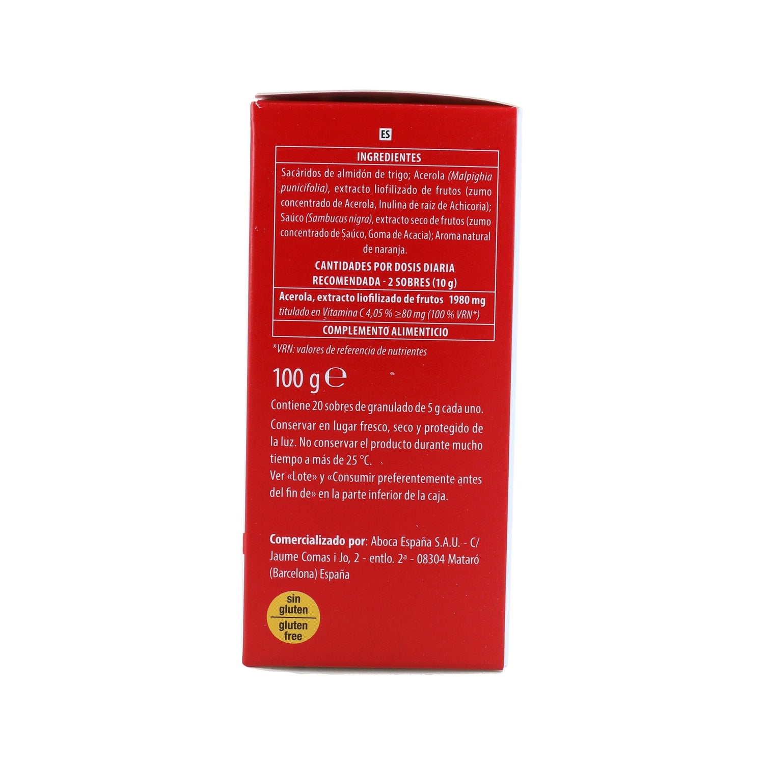 Complément alimentaire en sachets solubles à base de vitamine C concentrée obtenue à partir d'acérola. Il soutient le fonctionnement normal du système immunitaire et contribue à maintenir des niveaux d'énergie normaux tout au long de la journée. Ses composants aident à prévenir l'apparition des signes de fatigue. Convient aux adultes.