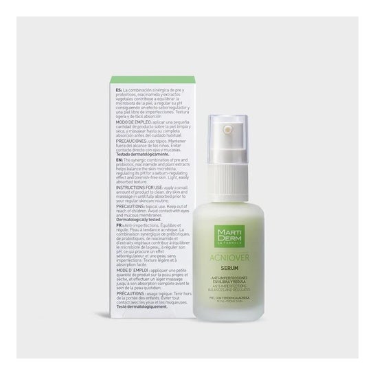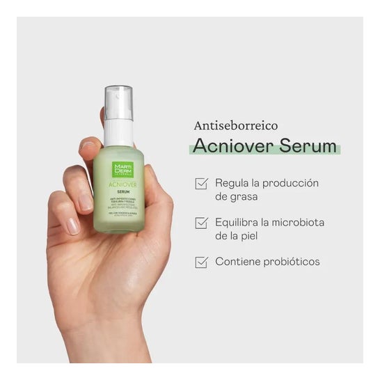 Acniover Serum 30 Ml sérum indiqué sérum formulé avec de l'extrait de fleur de lotus, niacinamide, probiotiques et / ou prébiotiques adaptés à la peau grasse acnéil équilibre le microbiote de la peau tout en régulant le pH, régulant ainsi l'excès de sébum de notre peau et libérant les imperfections.Laisse une agréable sensation de propreté et de fermeté.