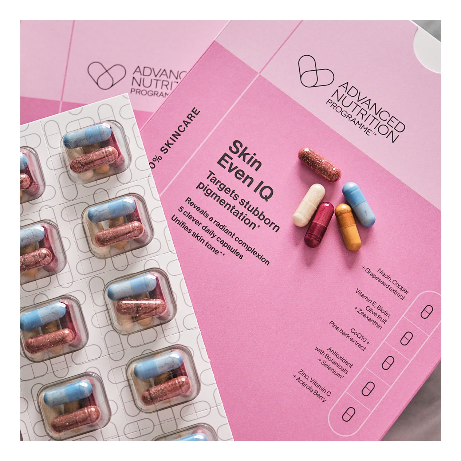 Il combine des ingrédients antimélanogéniques —niacinamide, L-cystéine, cuivre et extrait de réglisse— avec de puissants antioxydants de pépins et de marc de raisin, vitamine C, extrait de fruit d'olive, CoQ10 et extrait de pin maritime, ainsi que des caroténoïdes et des polyphénols (bêta-carotène, myrtille, curcuma, extrait de thé vert, lutéine, lycopène, sélénium et vitamine E). Cette synergie inhibe la tyrosinase, réduit le stress oxydatif et atténue les taches pour révéler un teint plus uniforme et lumineux.