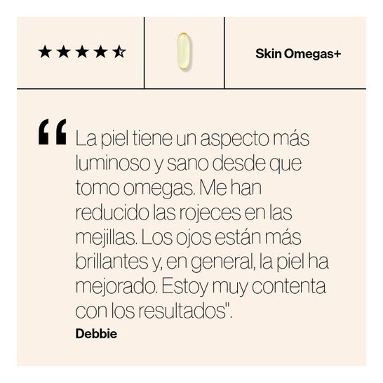 Apporte 1140 mg d'huile de poisson purifiée (EPA 356 mg, DHA 238 mg), 594 mg d'huile d'onagre avec GLA 50 mg et vitamine A 120 µg pour renforcer la barrière, réduire l'inflammation et améliorer le confort cutané.
