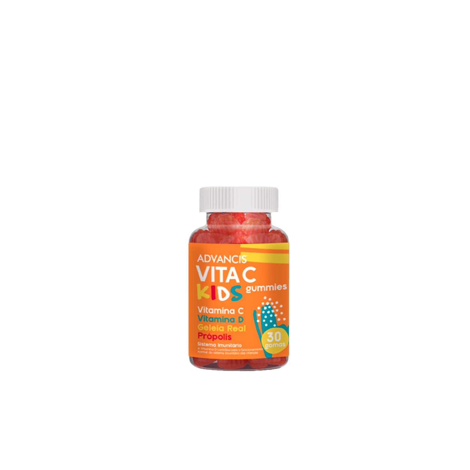 Advancis Vita C Kids 30 Gummies est un complément alimentaire spécialement conçu pour les enfants. Cette formule inclut des vitamines C et D, en plus d'être enrichie en gelée royale et propolis. Son objectif principal est de contribuer au bon fonctionnement du système de l'organisme chez les plus petits.