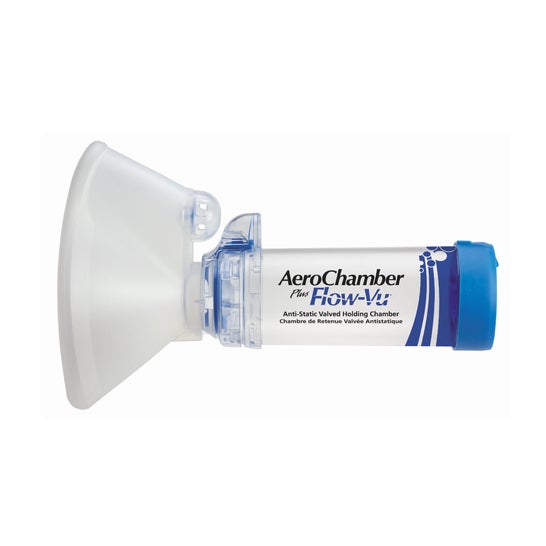 Aerochamber Plus Flow-Vu Chambre d'inhalation adulte 1ud est une chambre d'inhalation spécialement conçue pour faciliter l'inhalation de médicaments aux personnes âgées ayant des difficultés respiratoires ou des problèmes à utiliser les inhalateurs.