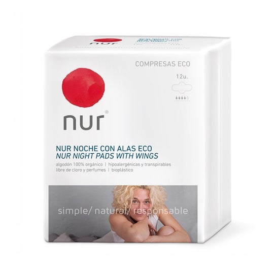 Coussins de nuit avec ailettes qui offrent une protection maximale, même en position horizontale et empêchent les fuites, réduisant ainsi le risque de tacher les sous-vêtements ou les draps. Fabriqué avec du coton 100% biologique et sans toxines, chlore ou parfums, respectant ainsi l'environnement et l'épiderme.