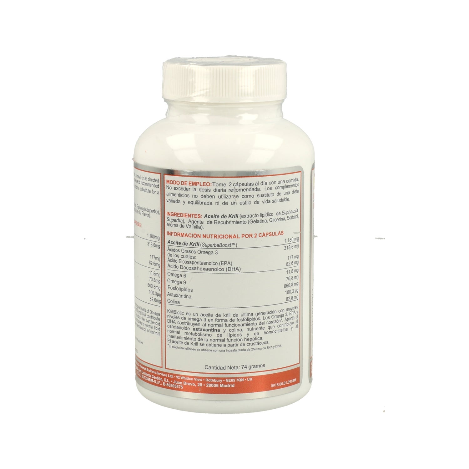 Krillbiotic est un produit durable, récolté selon un système qui évite la capture d'autres espèces et maintient le krill en vie jusqu'à son traitement, ce qui empêche sa détérioration et son oxydation, préservant ainsi toutes les propriétés de l'huile. Les oméga-3 du krill sont principalement associés à des phospholipides (et non à des triglycérides comme dans l'huile de poisson), ce qui facilite leur absorption et rend le produit plus digeste et exempt d'inconforts digestifs tels que le reflux et l'arrière-goût de poisson.