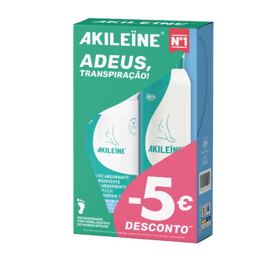 Akileïne Poudre Absorbante Antitranspirante 75g + Spray pour Chaussures 150ml contient :