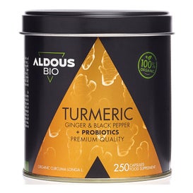 Complément alimentaire sous forme de gélules, composé d'extraits de curcuma, de gingembre et de poivre noir, tous de source biologique, qui aide à réduire les douleurs et les inflammations articulaires et à améliorer la santé du système digestif, des cheveux et de la peau.