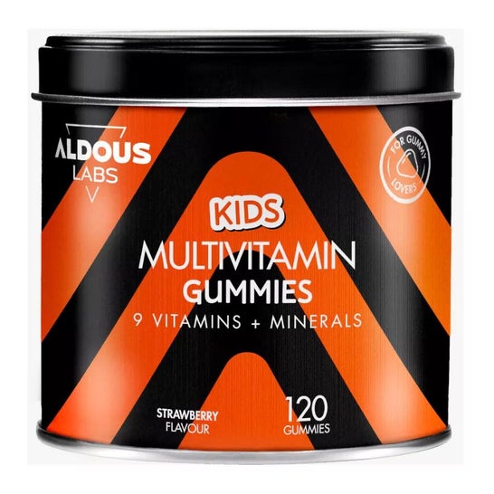 Aldous Labs Multivitamins for Children Strawberry Flavour 120 gummies est un complément alimentaire sous forme de gomme qui combine probiotiques et vitamines pour les enfants. Ces gommes contiennent un mélange de probiotiques et de vitamines b3, b5, b6 et c, avec un agréable goût de mûre et des arômes naturels, et une faible teneur en sucre.