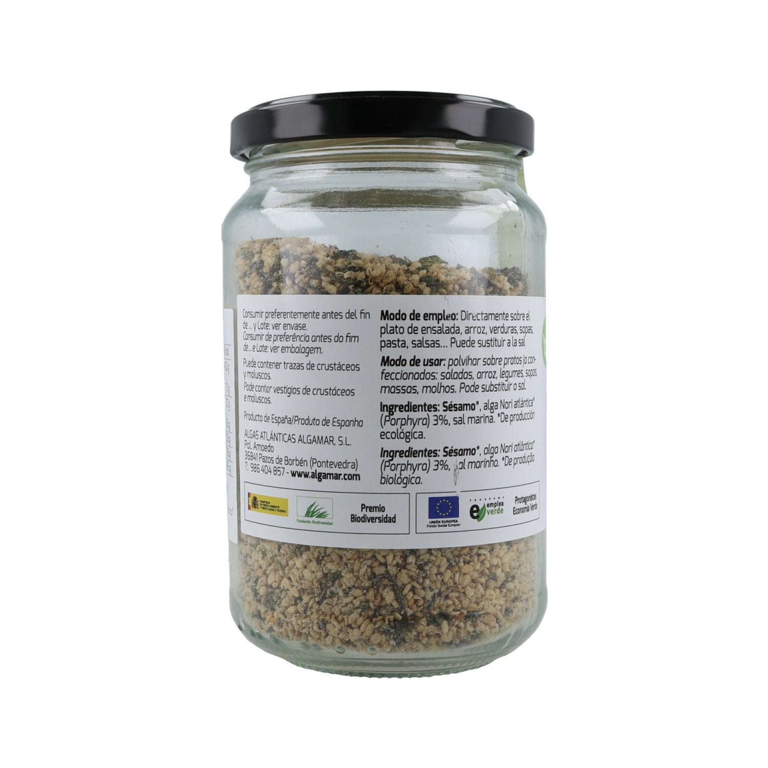 Assaisonnement japonais apprécié dans la cuisine macrobiotique. Élaboré à partir de sésame moulu mélangé avec algue marine et sel.