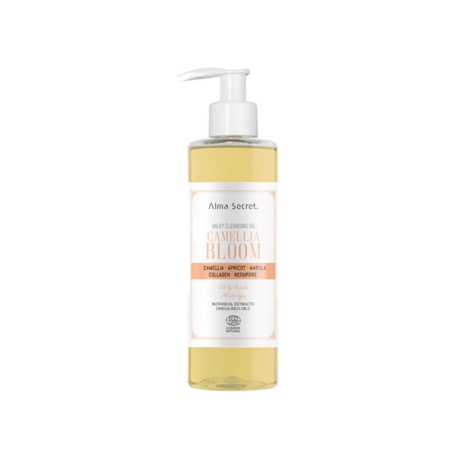 Alma Secret Camellia Bloom Cleansing Oil 200 ml huile démaquillante nettoie et démaquille en douceur. Élimine le maquillage waterproof, la crème solaire et les impuretés sans altérer la barrière cutanée. Sa texture légère nourrit tout en nettoyant et laisse le visage apaisé et illuminé. Il est adapté à tous les types de peau, y compris les sensibles et réactives.