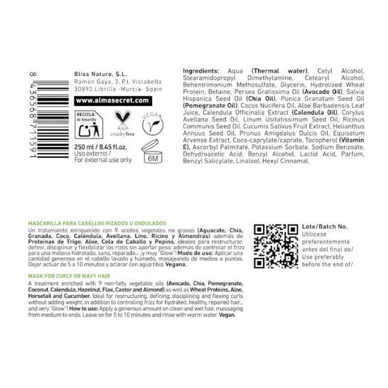 Masque pour cheveux frisés enrichi de 9 huiles végétales non grasses pour obtenir une nutrition très intense des cheveux qui aide à réparer et à renforcer la fibre capillaire, en aidant à définir et à discipliner la boucle pour obtenir des vagues renforcées très naturelles et élastiques sans effet de frisottis. De plus, sa composition végétalienne et hypoallergénique aide à protéger les cheveux de la chaleur, améliorant leur tolérance aux traitements thermiques ou chimiques, contribuant ainsi à l'obtention d'une crinière bouclée lumineuse parfaite.