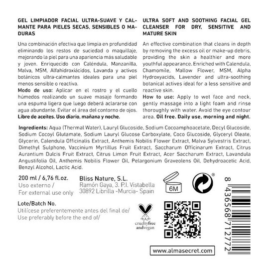 Ce gel nettoyant pour le visage, formulé à base d'extraits de calendula et de camomille, aide à éliminer délicatement les traces de maquillage, le sébum et les impuretés du visage sans endommager la surface de la peau. Sa composition douce est particulièrement adaptée aux peaux matures, sèches ou sensibles.