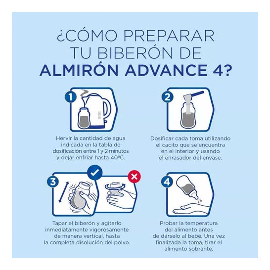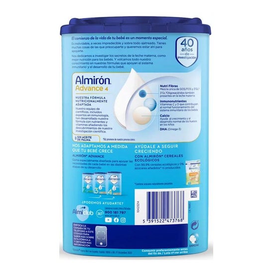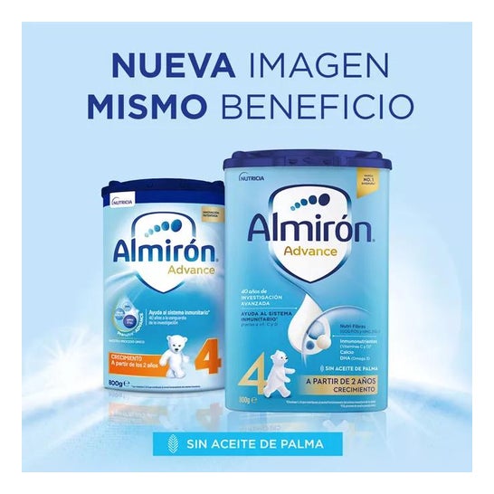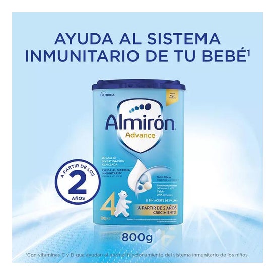 Almirón Advance 4 Leche de Crecimiento 800g est un lait de suite en poudre qui contient une combinaison d'oméga 6, d'oméga 3 et d'oligosaccharides présents dans le lait humain.
