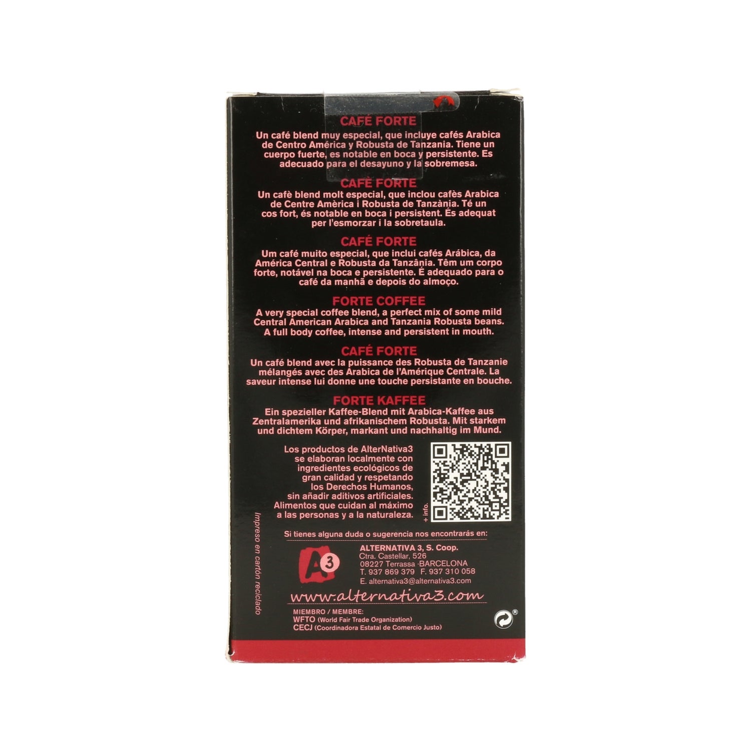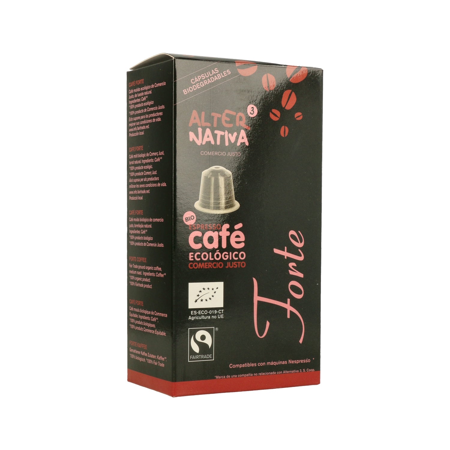 Le café Bio Forte est fabriqué à partir de la meilleure sélection de grains d'Arabica d'Amérique centrale. Ce mélange très spécial comporte 10 capsules compatibles avec les machines Nespresso. Café moulu naturellement torréfié. Le plastique de ces capsules peut être jeté dans les conteneurs bruns de matières organiques. N'oublier pas de séparer le couvercle, qui va dans le récipient jaune. Recommandé pour le petit-déjeuner et le café d'après-dîner.