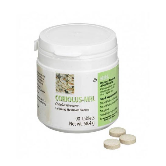 Complément alimentaire en comprimés à base de coriolus versicolor ou également connu sous le nom de champignon queue de dinde. Son processus de culture biologique aide à garantir une poudre de biomasse uniforme, avec un degré très élevé de pureté.