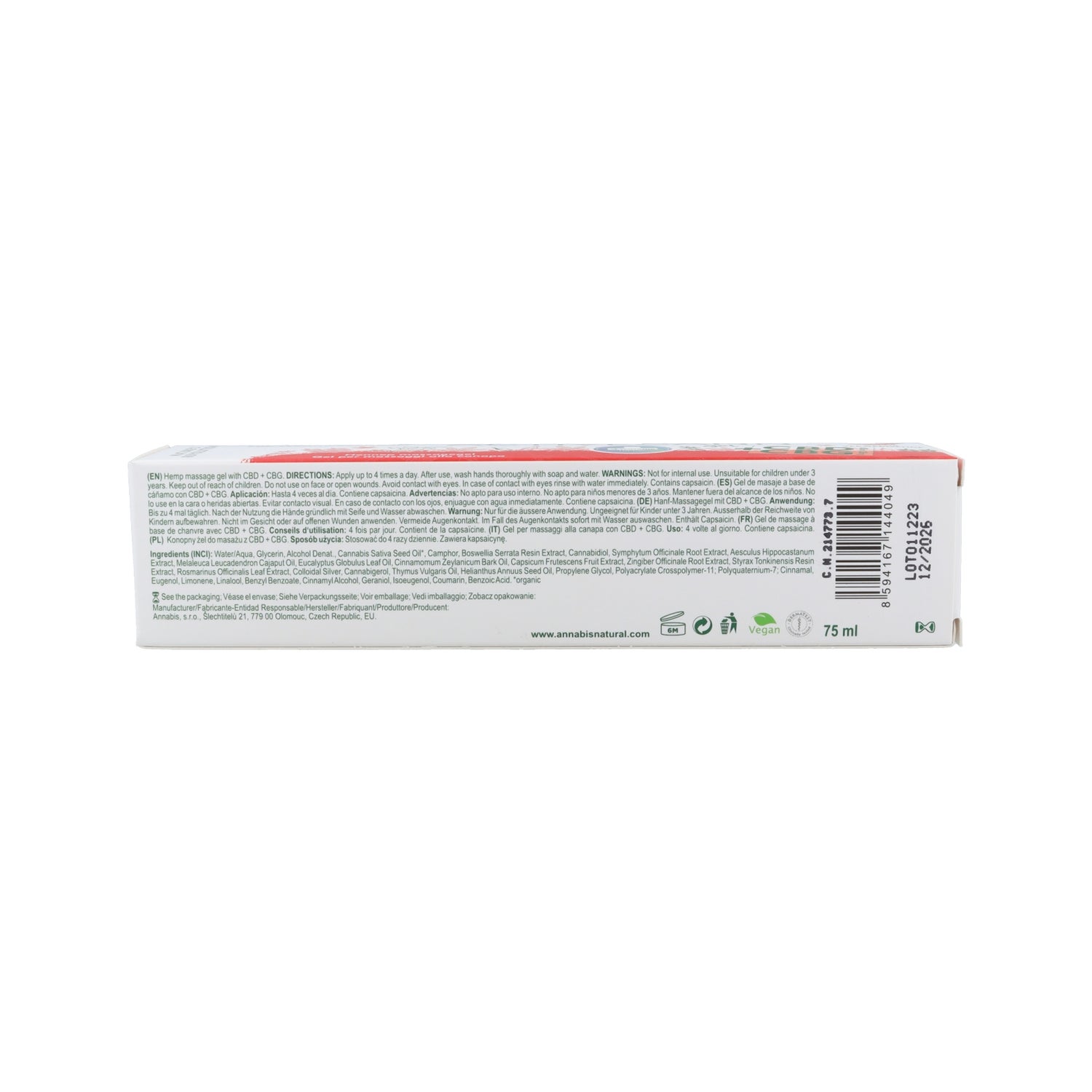 Annabis Activecann Gel Massage Effet Chaleur Chanvre 75ml est la solution parfaite pour soulager et réconforter les muscles et les articulations après l'exercice physique ou l'effort quotidien. Sa formule avancée comprend CBD, CBG et huile de chanvre, conçue spécifiquement pour des massages localisés sur les zones musculaires et articulaires. Elle offre un effet thermique immédiat qui relaxe et tonifie la peau.