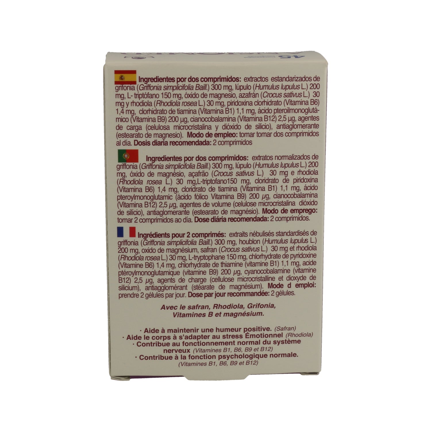 Ansiomed 45 Comprimés est un complément alimentaire à base de safran, rhodiola, griffonia, magnésium et vitamines B.