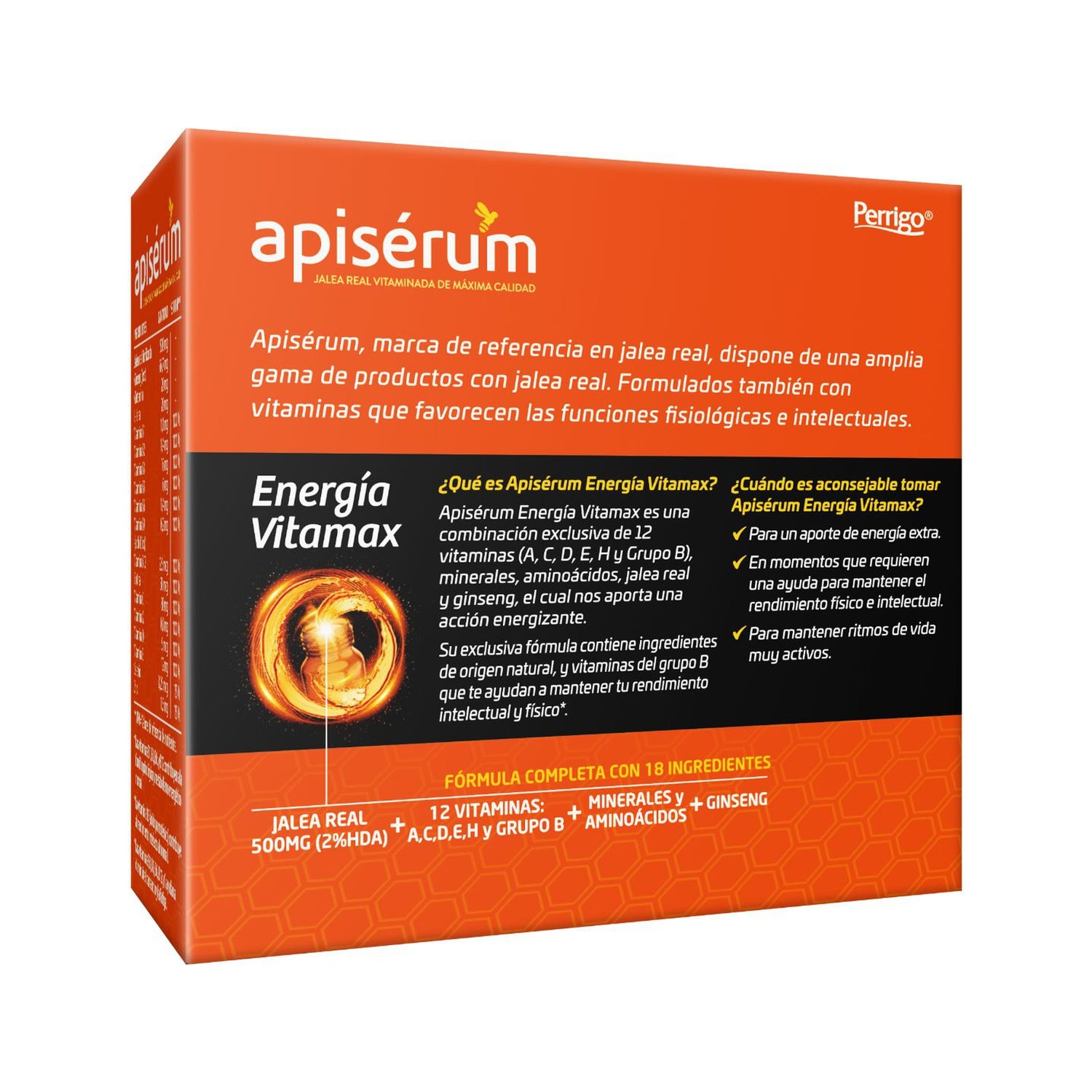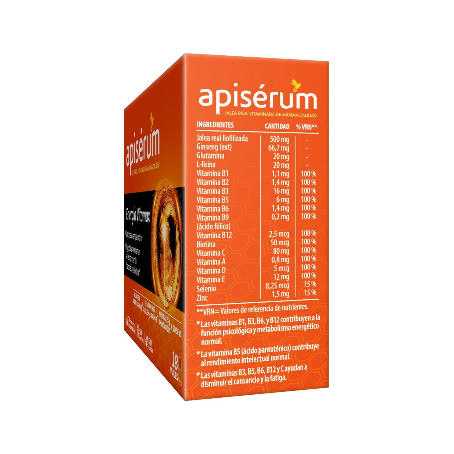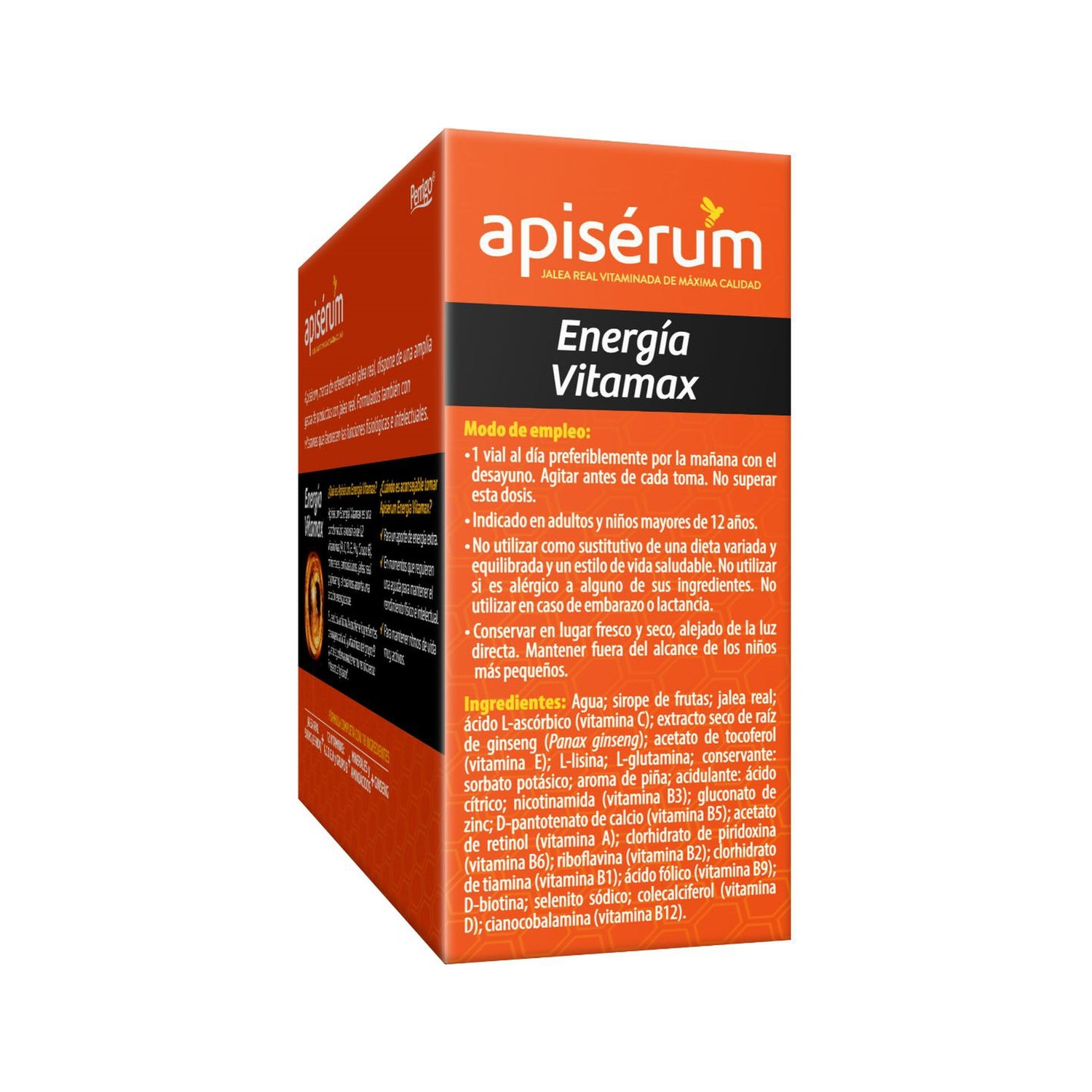 Apiserum Energia Vitamax 18 Vials est une combinaison de vitamines, minéraux, acides aminés, gelée royale et ginseng, qui nous donne de l'énergie à notre corps. Tous les ingrédients qu'il contient sont naturels.