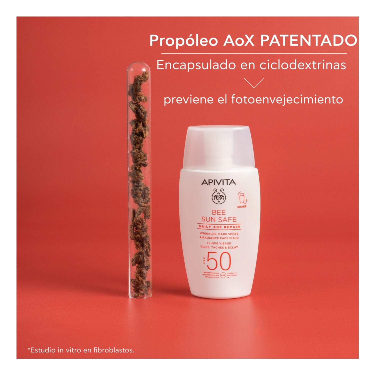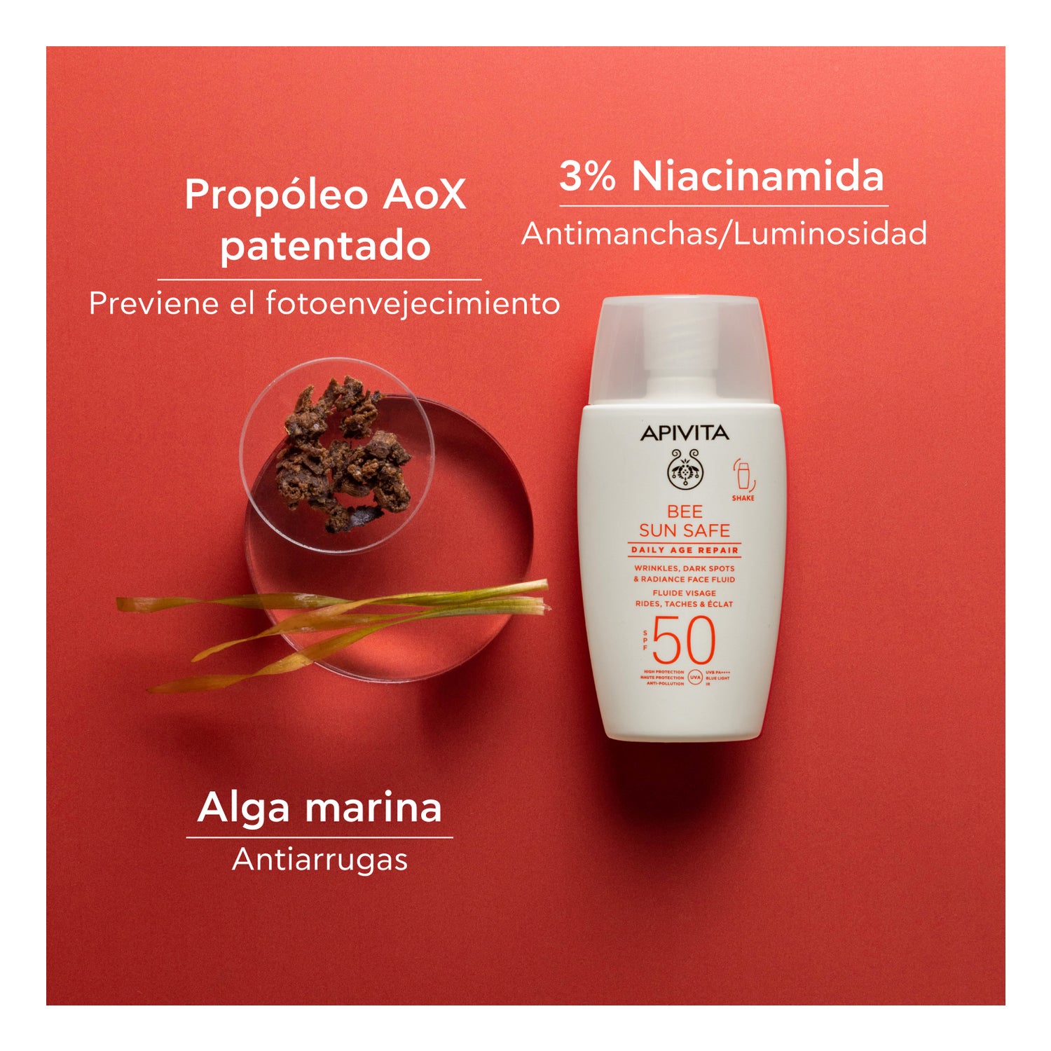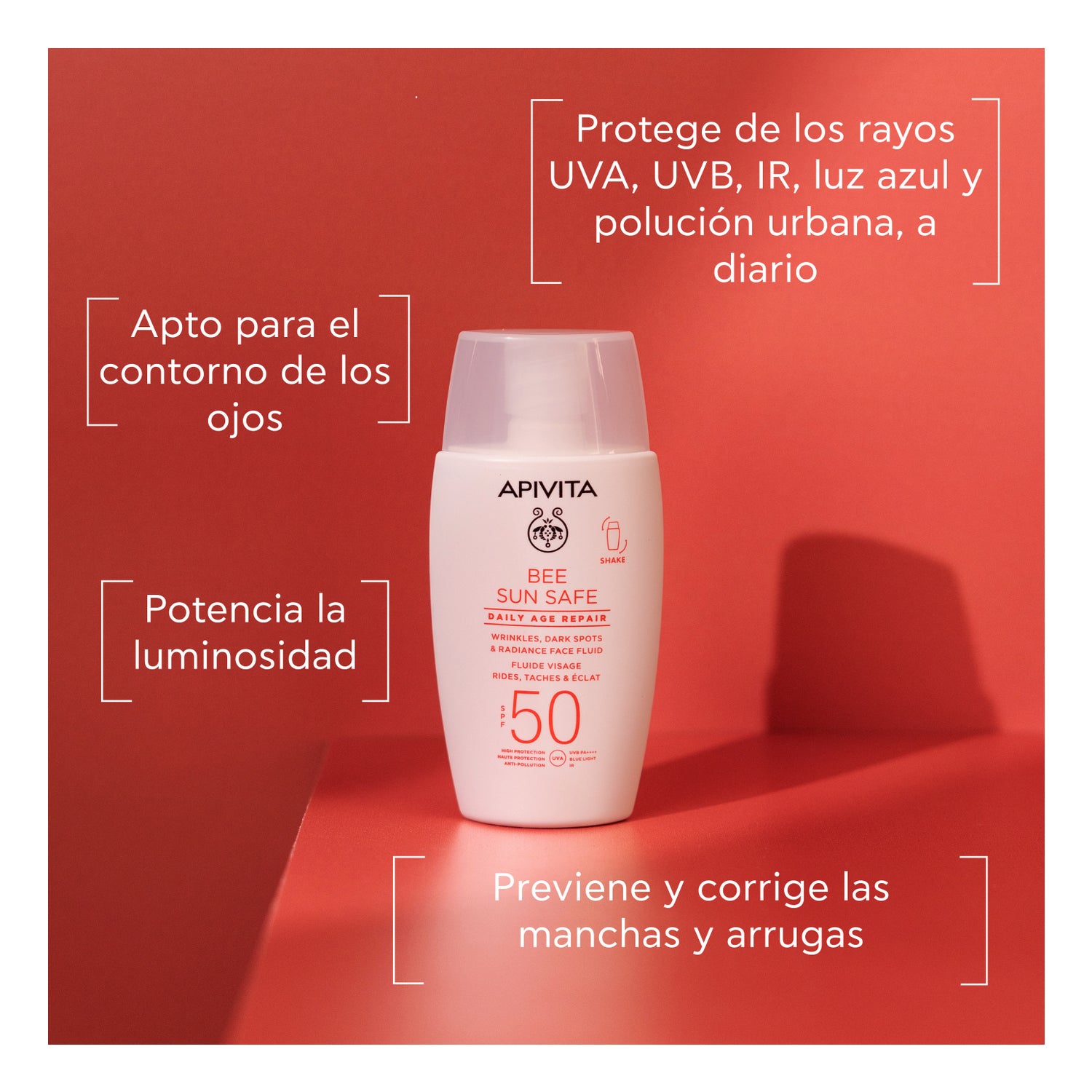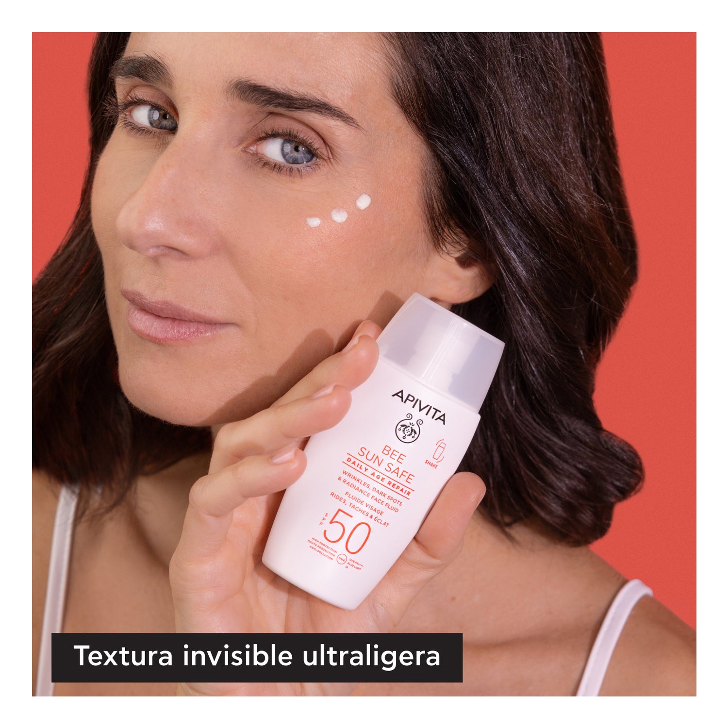Apivita Bee Sun Safe Daily Age Repair Spf50 50ml est un fluide facial quotidien conçu pour offrir une protection solaire avancée et un soin anti-âge global.
