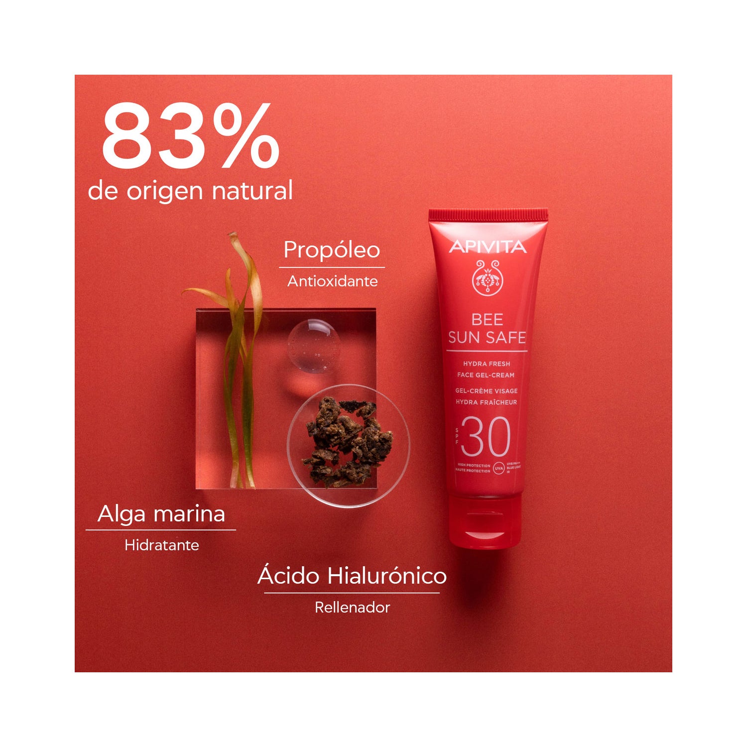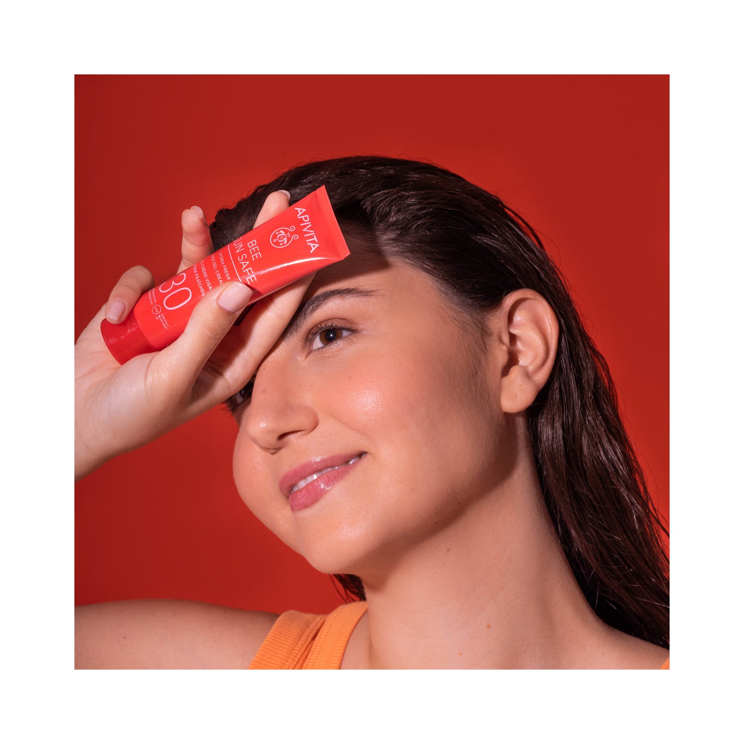 Apivita Bee Sun Safe Hydra Fresh Gel-Crème Visage SPF30 50 ml est une crème solaire légère et veloutée, avec protection contre UVA, UVB et lumière bleue, qui offre également une action 2 en 1 contre les taches et les rides. Elle s'absorbe rapidement, offrant une peau uniforme et confortable.