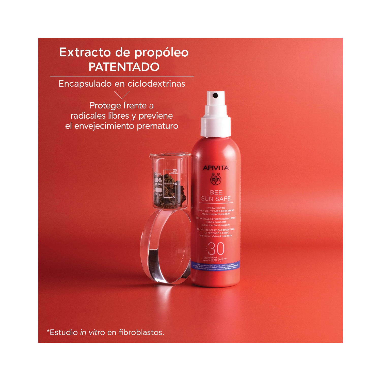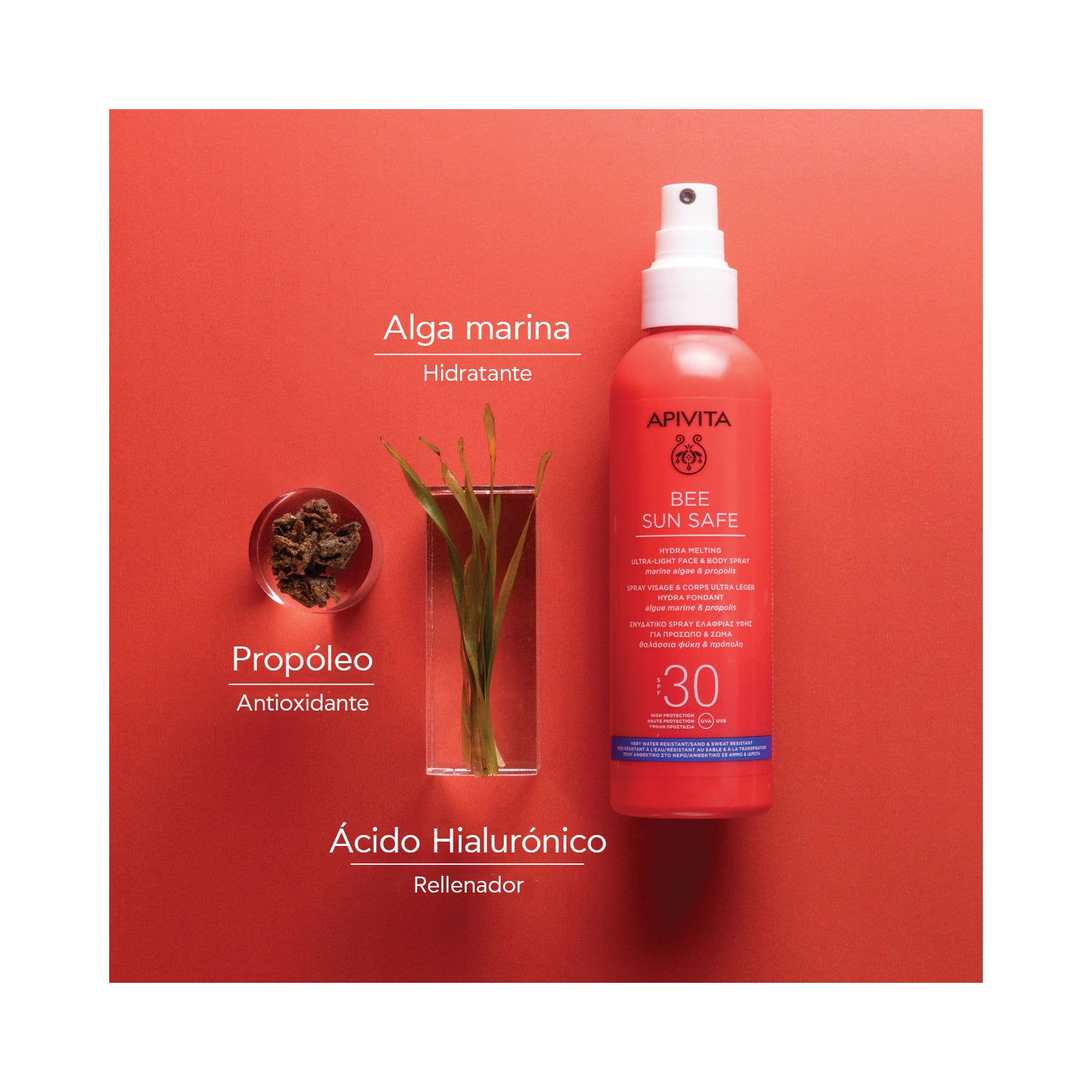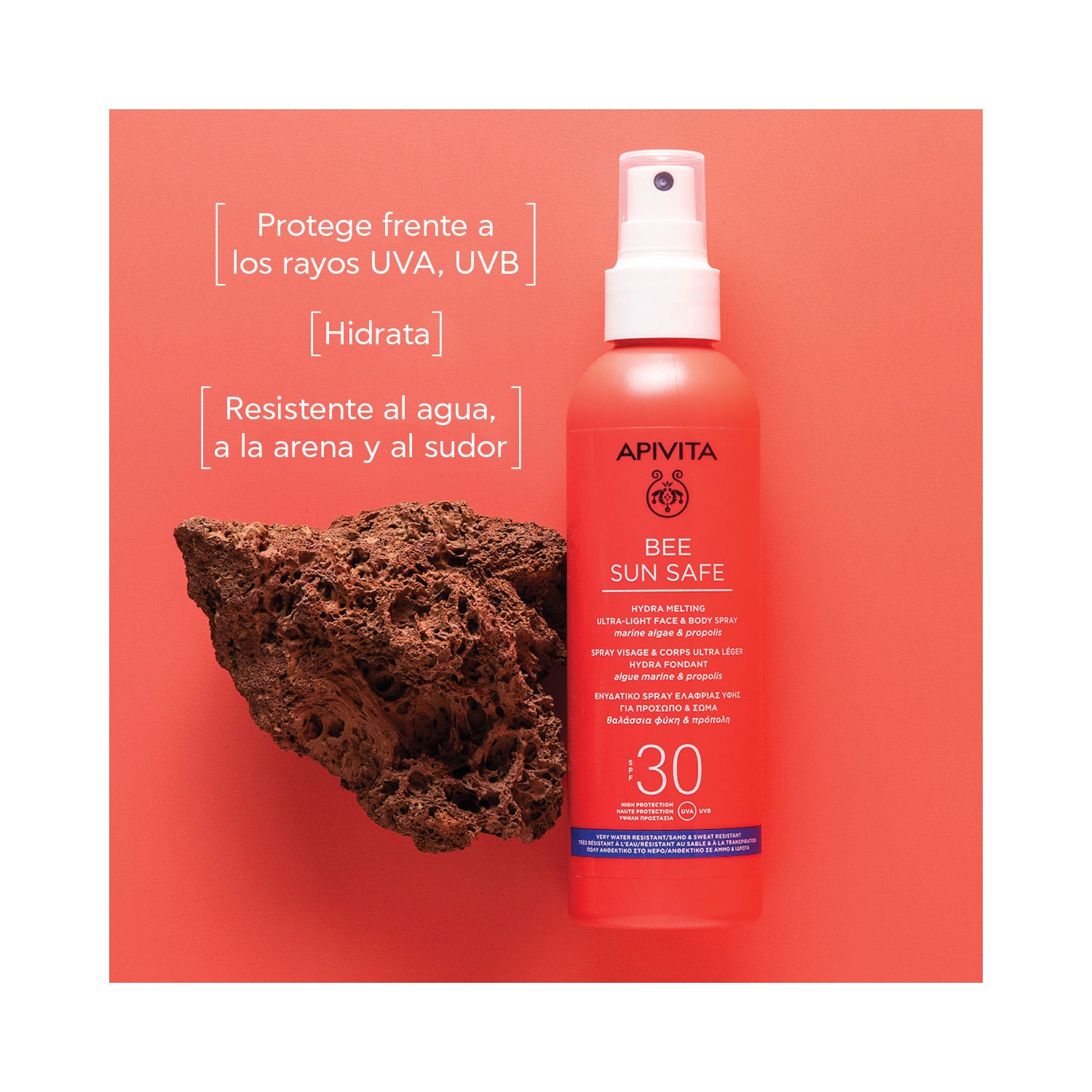 Apivita Bee Sun Safe Spray Hydra Melting Ultra Léger Visage & Corps SPF30 200ml est un spray qui aide à protéger la peau du visage et du corps contre les rayons solaires.