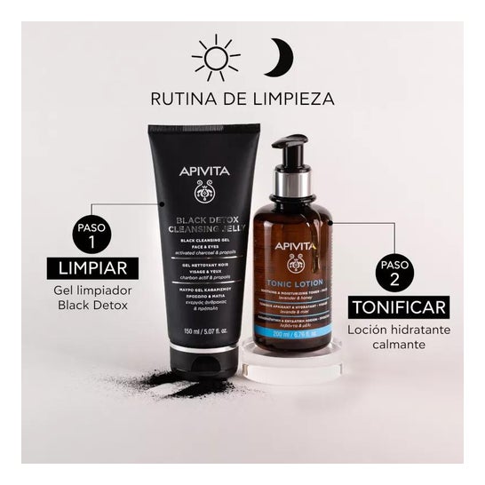 Gel nettoyant et détoxifiant. Sa formule à base de charbon actif et de propolis permet de nettoyer en profondeur et efficacement le visage et les yeux sans dessécher la peau et en laissant une sensation de fraîcheur et de confort. Sa composition à base d'antioxydants aide à garder la peau saine et nourrie pour lui procurer du bien-être et lui offrir une protection supplémentaire contre la pollution. Il a été testé dermatologiquement et ophtalmologiquement.