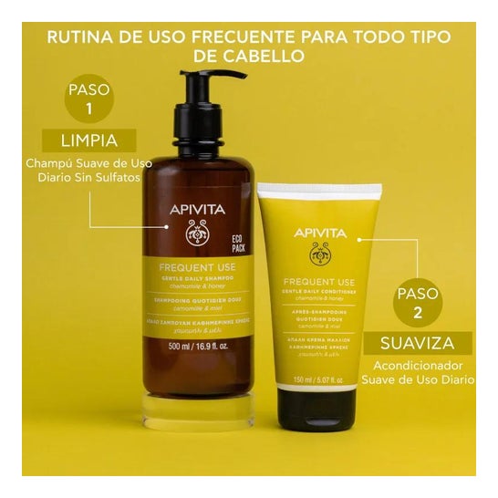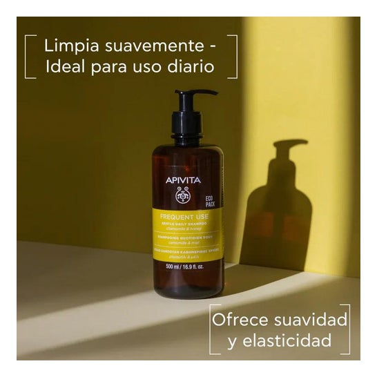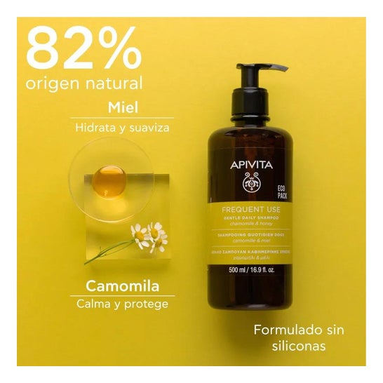 Leshampooing Apivita à usage fréquent 500ml est un shampooing à usage quotidien formulé avec du miel et de la camomille qui fournit une hydratation tout en nettoyant le cuir chevelu en douceur.
