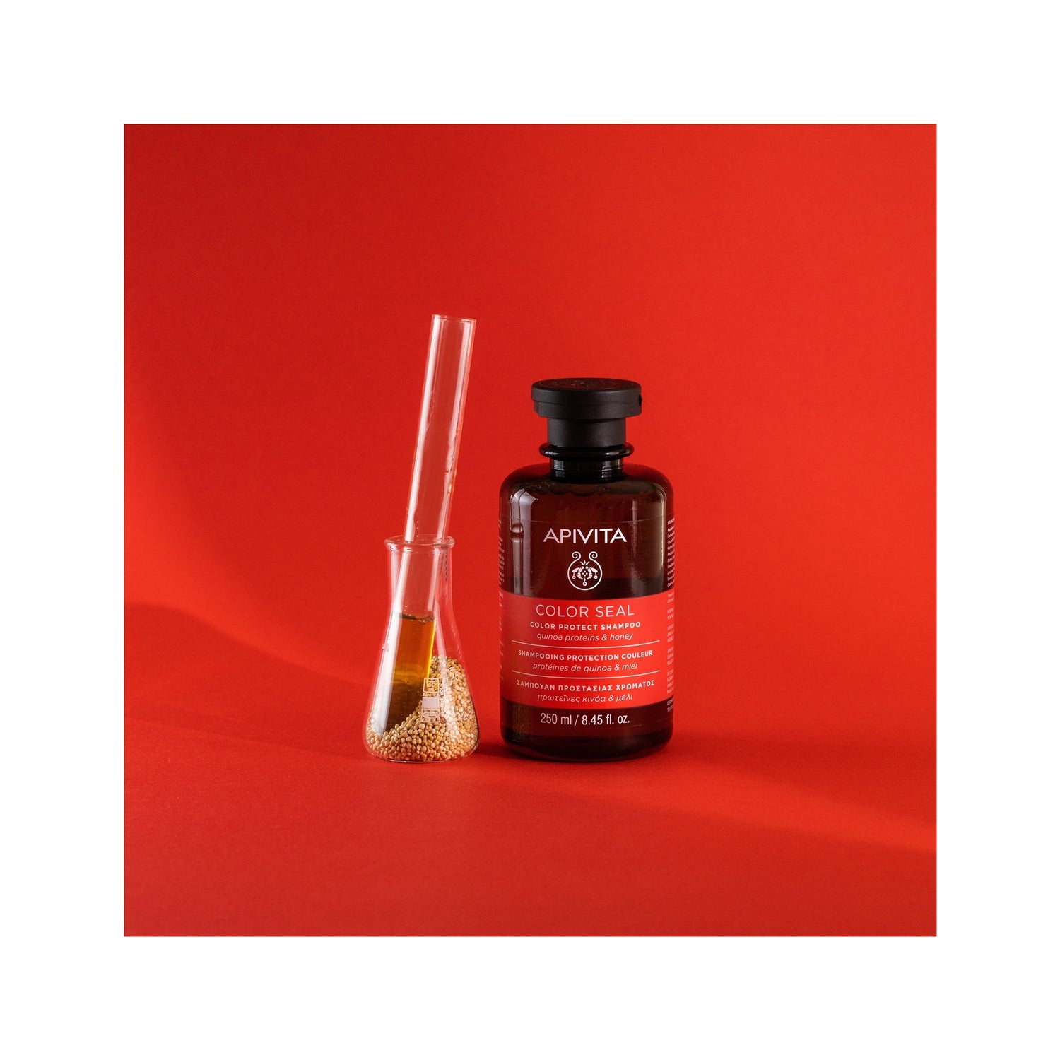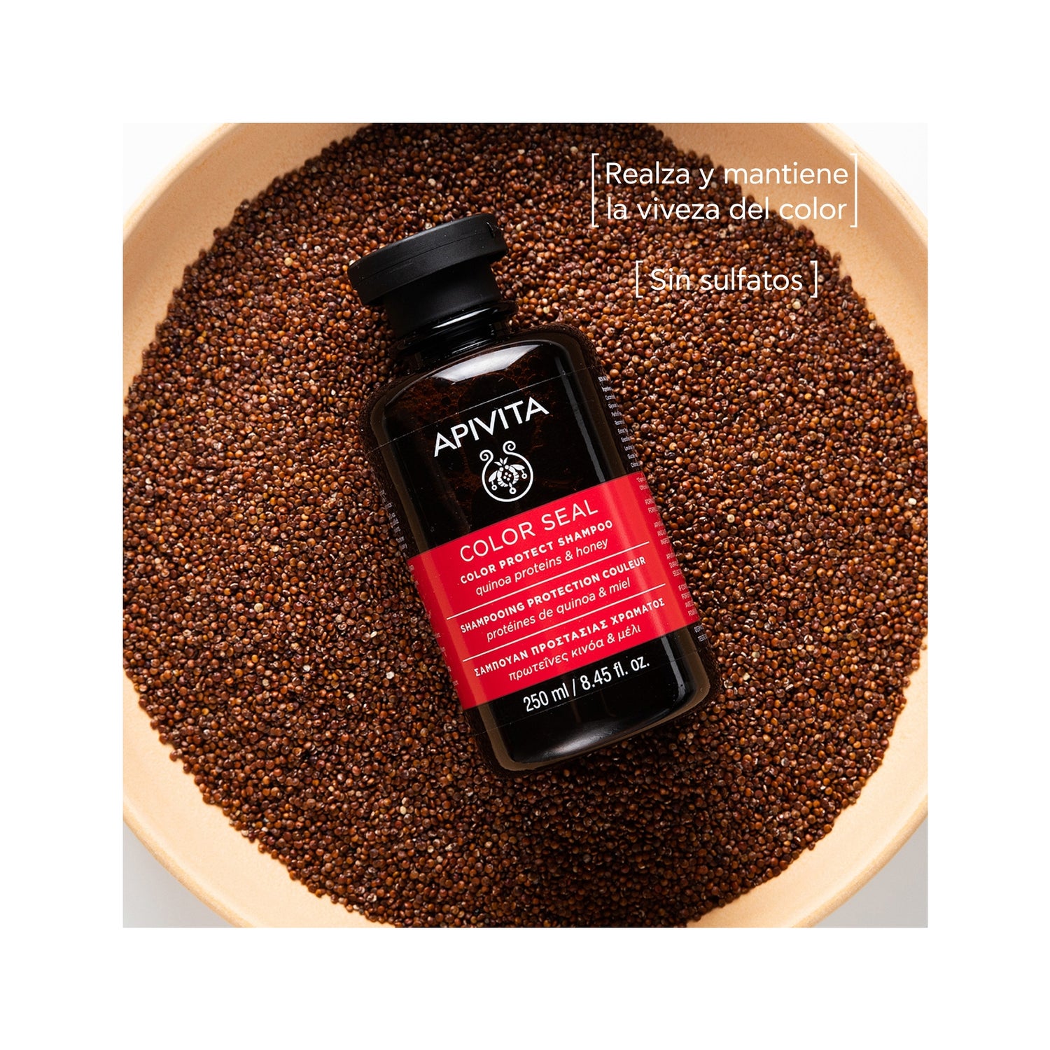 Shampooing qui nettoie et renforce la brillance et la force de la couleur. Convient aux cheveux colorés ou méchés. Aide à maintenir la couleur et à la protéger de la dégradation et des rayons UV. Il l'hydrate également et le protège des agressions extérieures quotidiennes telles que la pollution et les outils thermiques (lisseurs ou sèche-cheveux). Grâce à sa formule enrichie en quinoa, miel et thym.