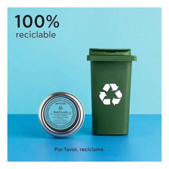 Apivita pilules d'eucalyptus et de propolis sans sucre soulagent le mal de gorge. De plus, il assure une protection antioxydante grâce au miel et à la vitamine C.