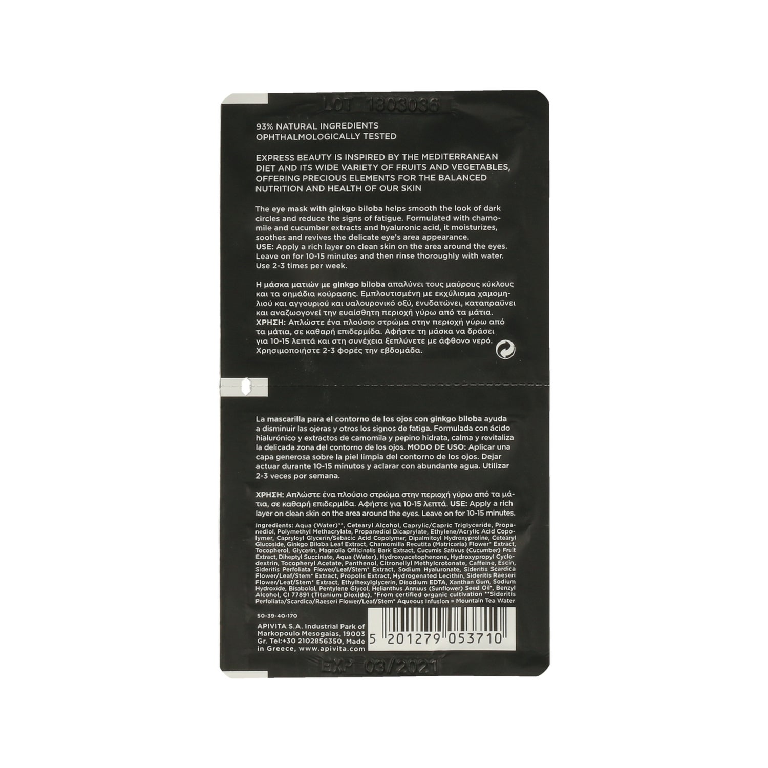 Le masque anti-cernes et anti-cernes au ginkgo biloba d'Apivita Express Beauty est très efficace pour corriger les poches qui apparaissent sur le contour des yeux et qui ternissent notre regard et notre visage. Il