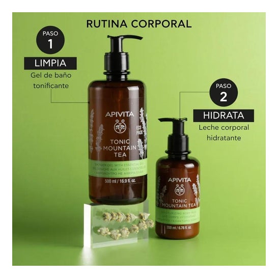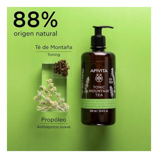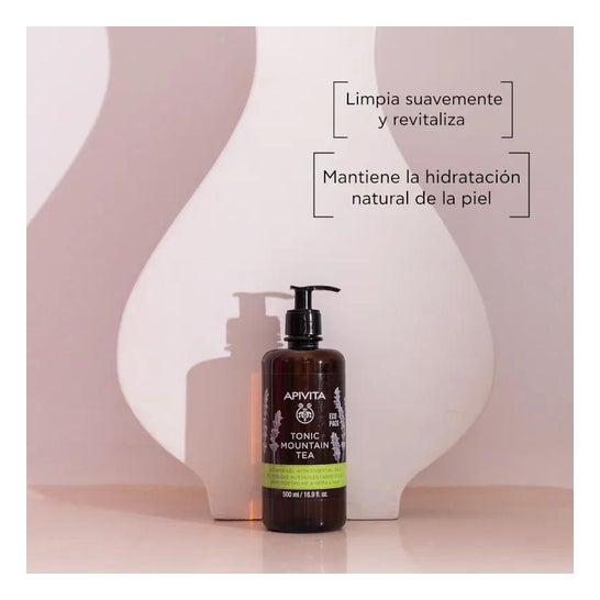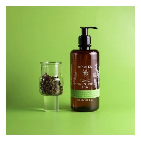 Apivita Tonic Mountain Tea Bath Gel 500ml est un gel de bain tonique enrichi en huiles essentielles qui aide à nettoyer la peau en douceur, en respectant son équilibre hydrique. Il est également formulé avec du thé grec de montagne qui aide à fournir une protection contre le stress oxydatif.
