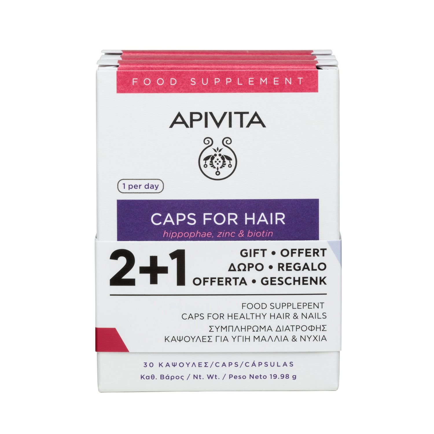 Sa formule enrichie en zinc, biotine et sélénium aide à maintenir la peau, les cheveux et les ongles en conditions normales.