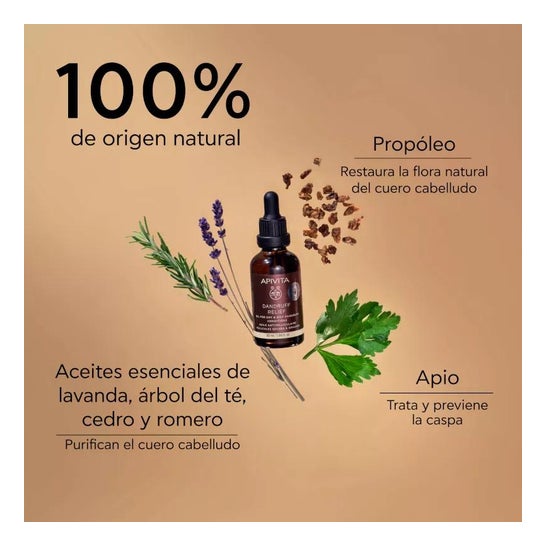 Apivita Dry Antipelliculaire Huile Antipelliculaire/Huile apaisante 50ml est un produit contenant 100% d'ingrédients naturels : Céleri, Extrait de Propolis Antimicrobienne, Herbe d'Olive Grecque*, Huiles de Jojoba* et Avoine, Huiles essentielles de Tea Tree*, Cèdre*, Romarin* et Lavande*, Vitamine E.