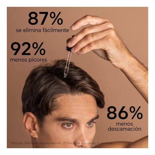 Ce traitement réduit les pellicules, apaise et adoucit le cuir chevelu. Grâce à l'extrait naturel de graines de céleri, qui est son composant principal, il réduit le développement du champignon Malassezia furfurfur et diminue la desquamation dès les premières semaines. De plus, il possède d'autres propriétés bénéfiques pour les cheveux :
