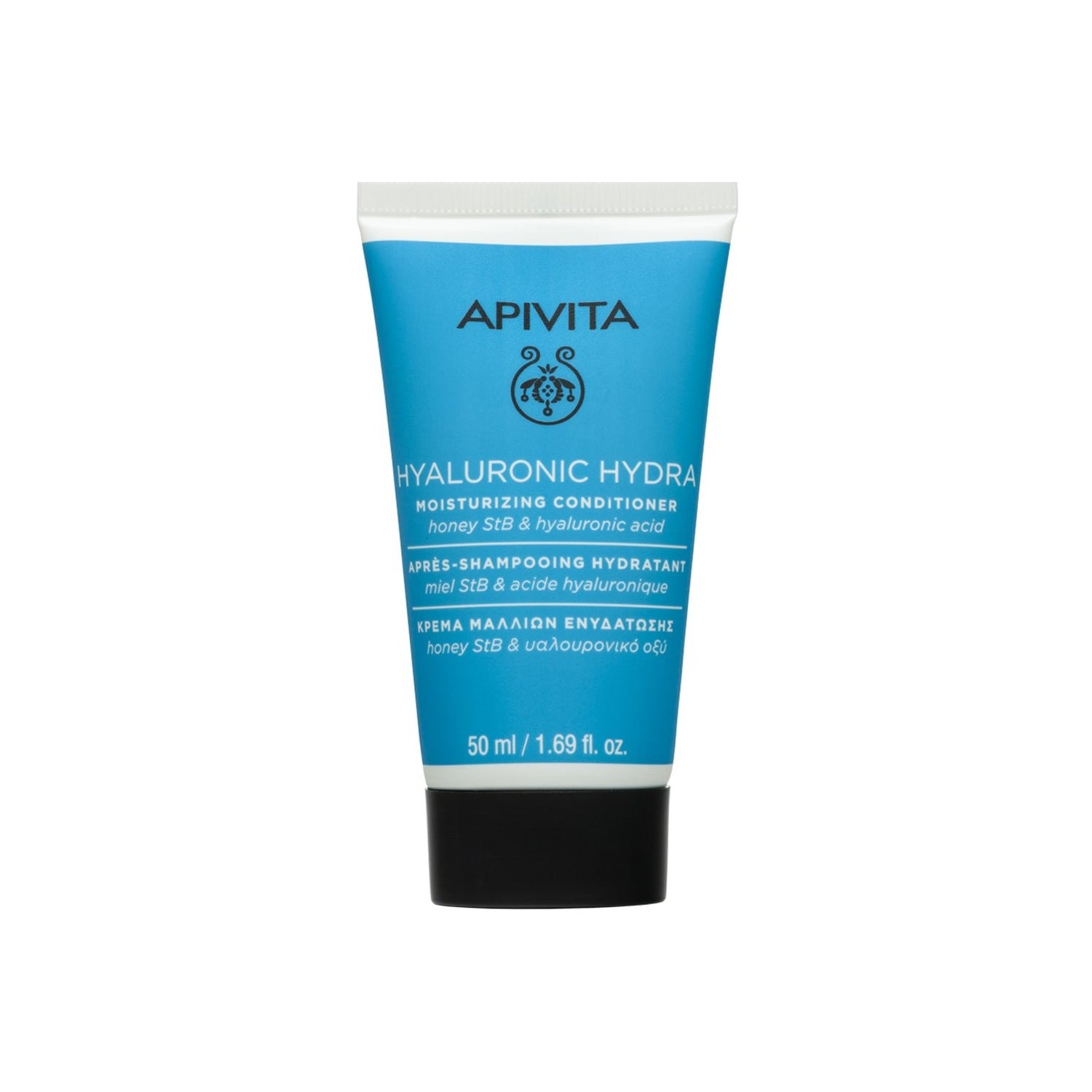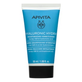 Apivita Hyaluronic Après-shampooing Hydratant 50ml pour cheveux secs et déshydratés nourrit en profondeur et aide à retrouver la douceur et la brillance. Sa formule contient acide hyaluronique et miel stabilisé. Elle offre une hydratation intense sans alourdir, indiquée pour les cheveux secs ou manquant de vitalité.