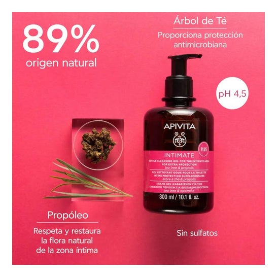 Apivita Intimate Plus Gel Intime Gel Intime Doux Nettoyant Doux au Tea Tree est un nettoyant naturel doux qui vous permettra d'assainir et de maintenir une hygiène intime délicate et contrôlée. Grâce à l'huile d'arbre à thé biologique, elle prévient l'apparition de microorganismes pathogènes dans les zones les plus délicates de votre corps.