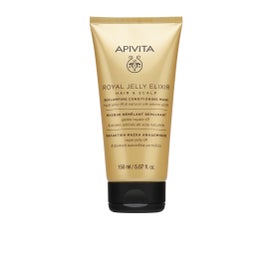 Masque capillaire Apivita Elixir de Gelée Royale 150 ml est un masque volumisant et conditionnant conçu pour revitaliser le cuir chevelu et aider à retrouver la densité et l'élasticité des cheveux. Il est indiqué pour les cheveux ternes, abîmés ou qui ont besoin d'un supplément de vitalité et de volume.