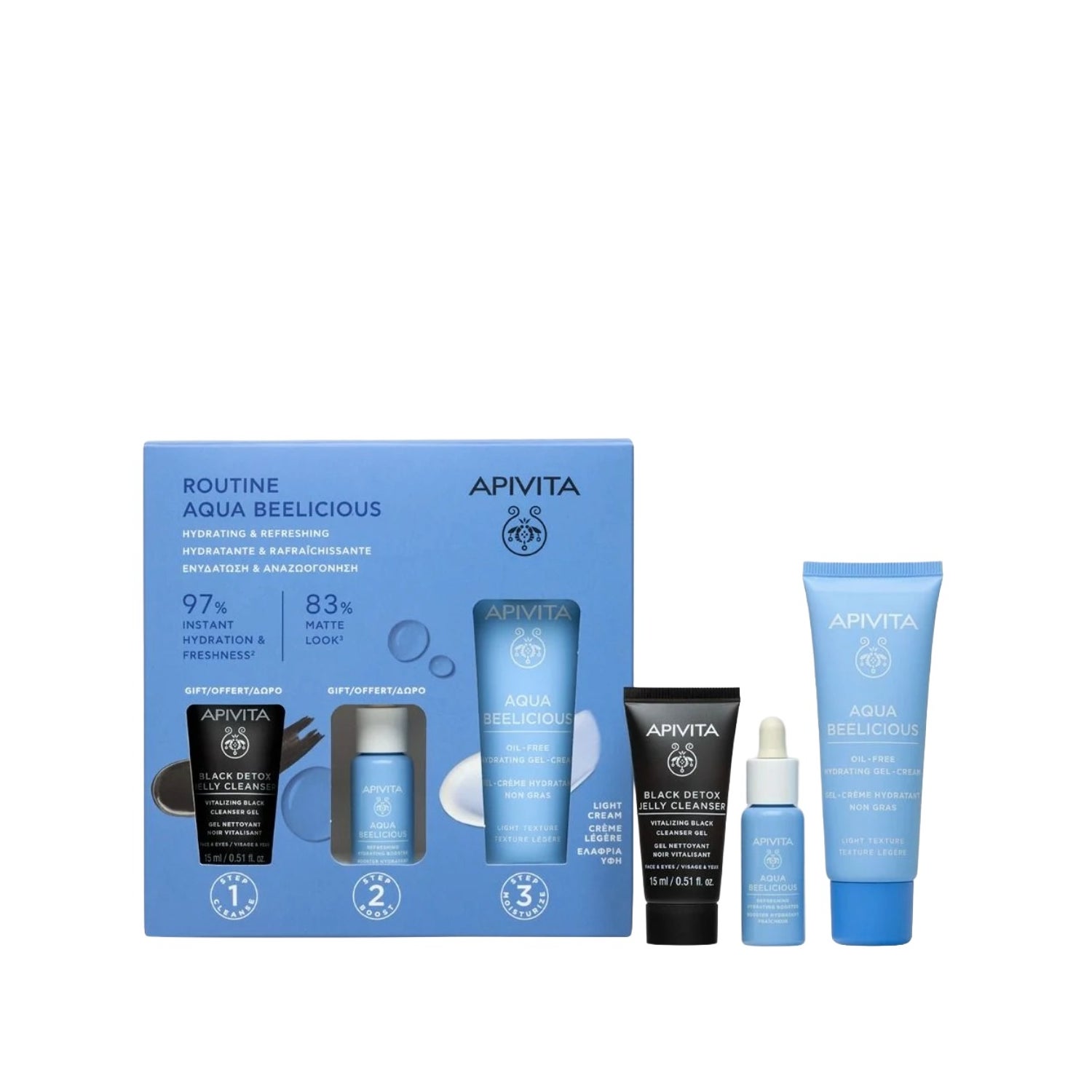 Apivita Routine Aqua Beelicious Set Black Detox + Booster + Oil Free pour une hydratation profonde et un détox facial est un pack d'APIVITA conçu pour une routine quotidienne de fraîcheur et de luminosité, avec une hydratation intense et sans sensation lourde. Il comprend :