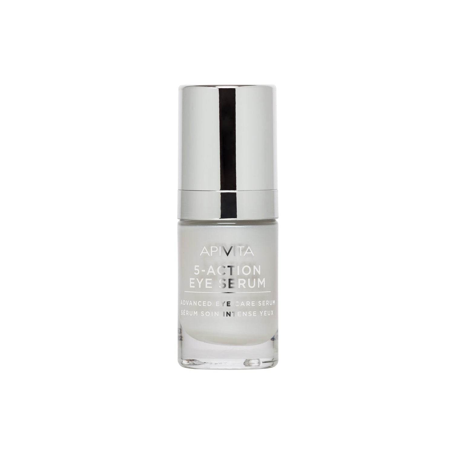 Le sérum 5 actions pour les yeux d'Apivita aide à raffermir, hydrater et réduire les signes de fatigue du contour des yeux. Il contient 96% d'ingrédients actifs naturels qui hydratent et minimisent les cernes, les poches et les gonflements de la paupière.