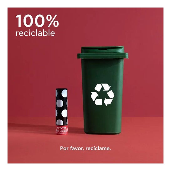 Apivita soin lèvres à la grenade restaure les lèvres gercées avec de la vitamine A, du bisabololol et de l'huile d'avocat tout en les apaisant et les hydratant avec du miel, de l'huile d'olive, de la cire d'abeille, du beurre de coco, du beurre de karité, de l'huile d'avocat, du ricin et des huiles essentielles de jojoba, de géranium.