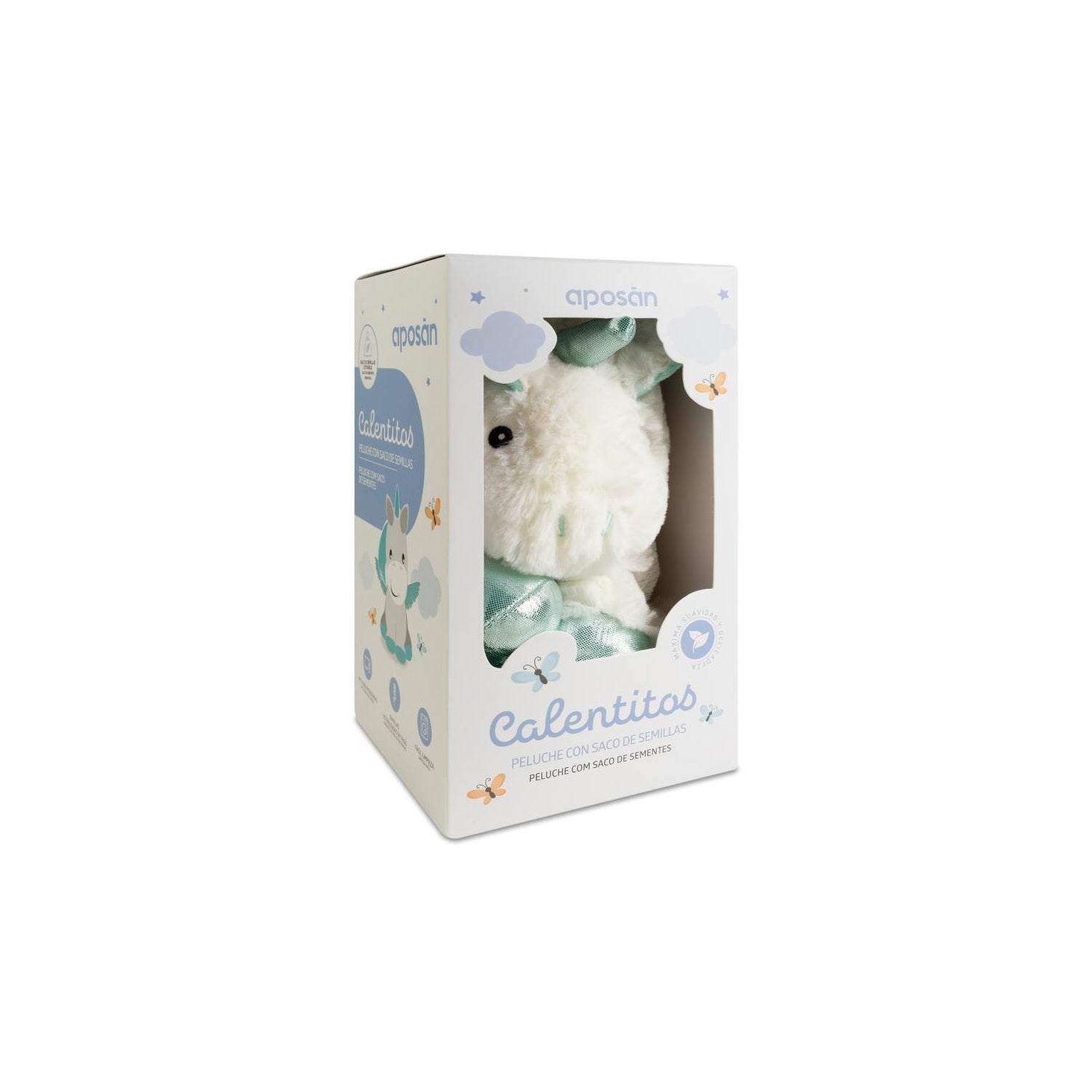 Aposán Calentitos Licorne Blanc 1 ud est une peluche thermique conçue pour apporter une sensación agréable de chaleur et de douceur. Elle est idéale pour réchauffer le berceau ou le lit des bébés et des enfants, et favorise le relax et le confort infantile.
